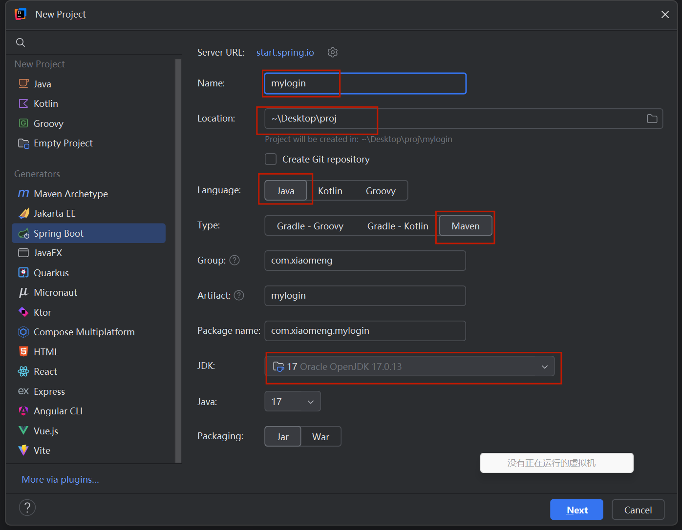使用springboot创建一个新的项目,项目名称为:mylogin